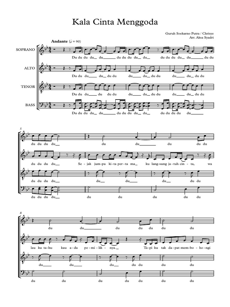 When Love Tempts is a 1997 album by Indonesian singer Chrisye with arrangement by Erwin Gutawa. Not Angka Kala Cinta Menggoda Chrisye 111 111 7 6 5 3 2 2 3 5 3 2 Sejak jumpa kita pertama Kulangsung jatuh cinta 1 111 7 65 3532 11233 565 321 1111 walau kutahu kau ada pemiliknya.